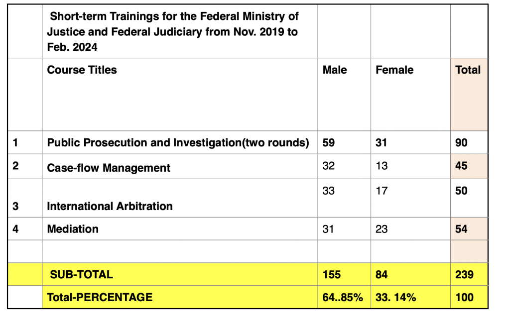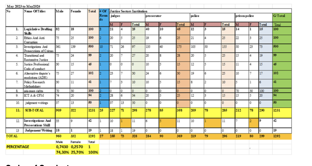 In the Somali region the objective of the in-service training was to enhance the knowledge and skills as well as to influence the attitude of legal professionals from across the justice sectors positively. Indeed, the program has successfully trained 1292 personnel as you can see from the attached summary three tables below.